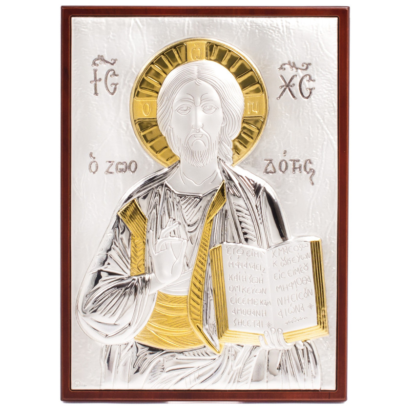 Матеріал срібного окладу зроблений із спеціального комбінованого листа металу який зверху ламінований шаром срібла 999 проби, також для захисту на поверхню наноситься родієве покриття яке захищає срібло від потемніння тя "старіння"