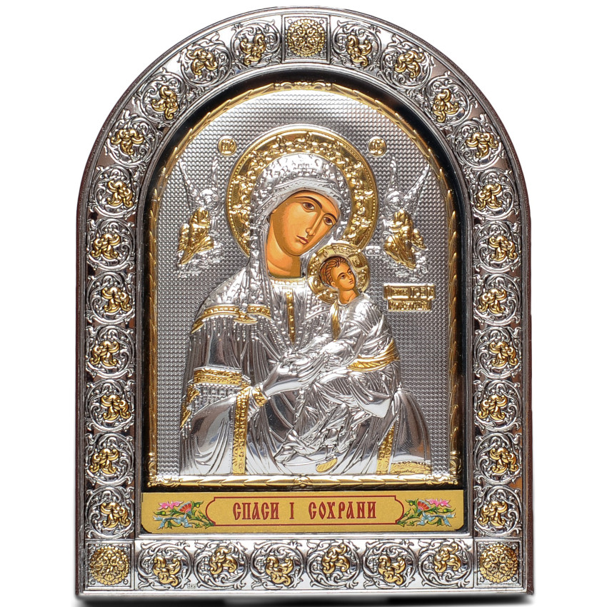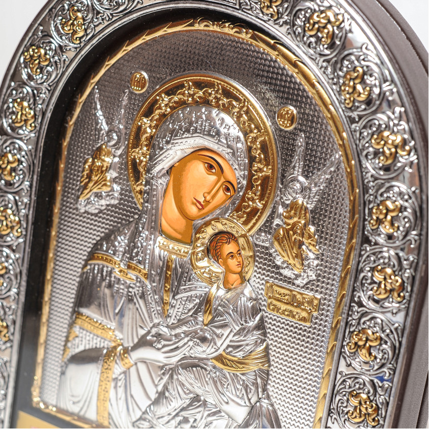 Вінчальна Пара Срібних Ікон Ісус Христос і Богородиця Неустанної Помочі 21,5х16,5см аркової форми під склом