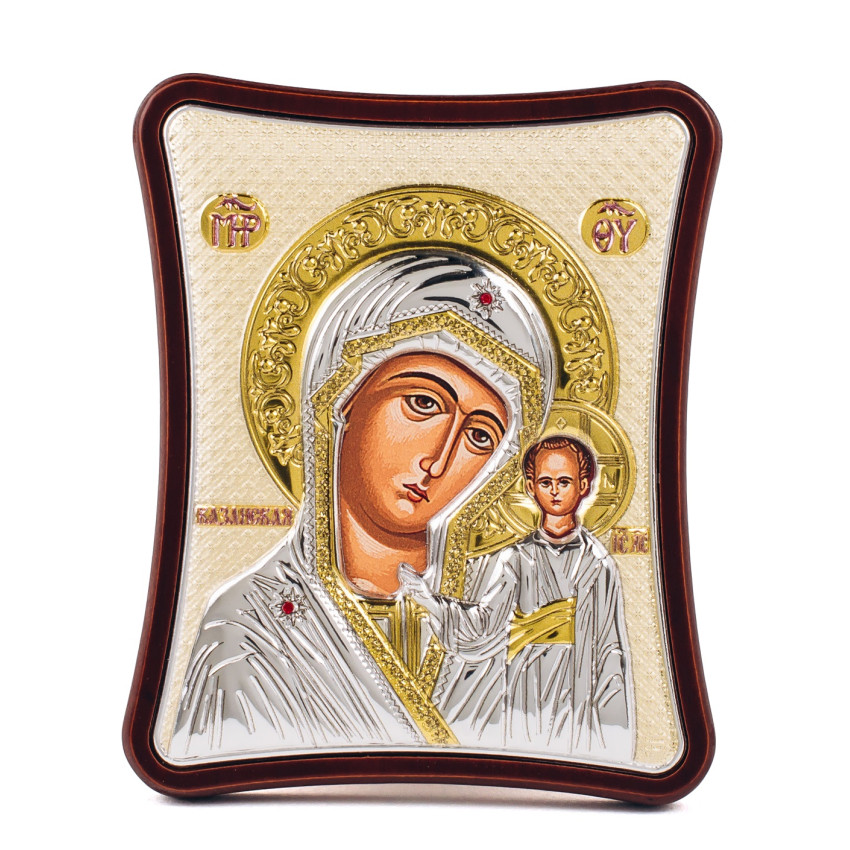 Вінчальна Пара Срібних Ікон Ісус Христос і Казанська Божа Матір 12х15см прикрашена позолоченим фоном