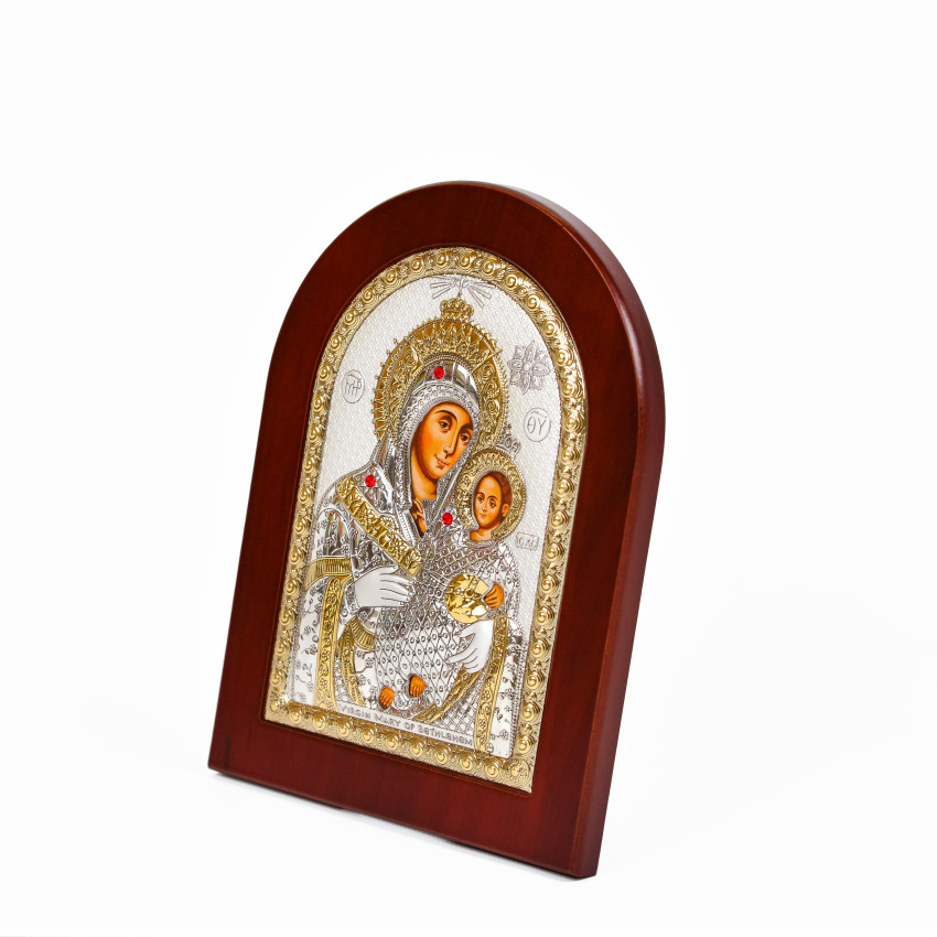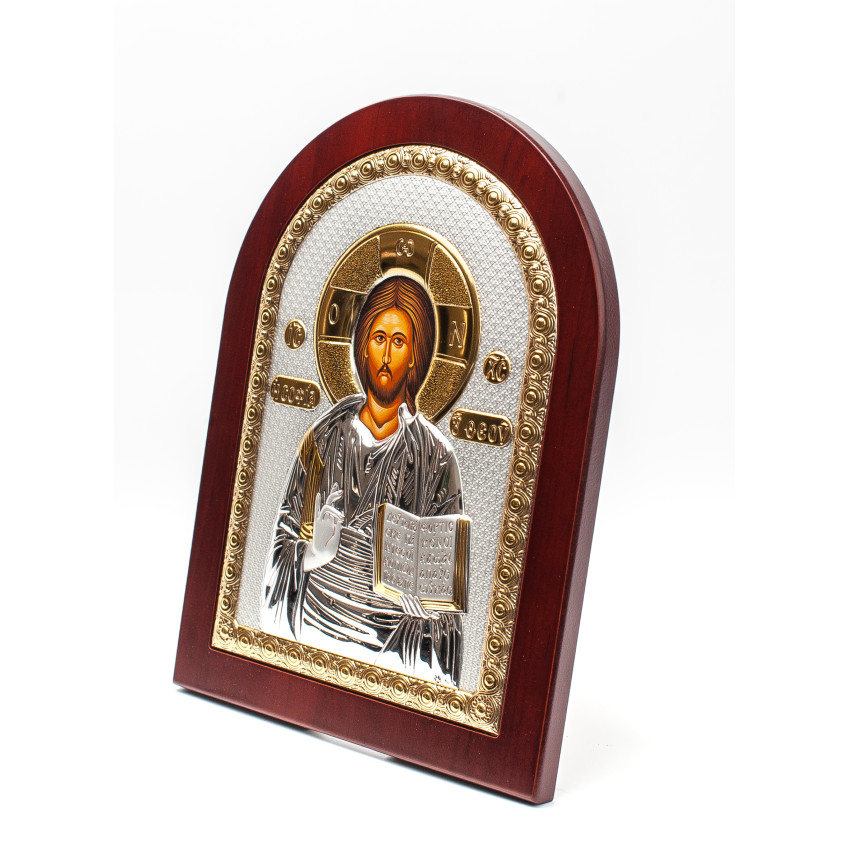 Матеріал срібного окладу зроблений із спеціального комбінованого листа металу який зверху ламінований шаром срібла 999 проби, також для захисту на поверхню наноситься родієве покриття яке захищає срібло від потемніння тя "старіння"