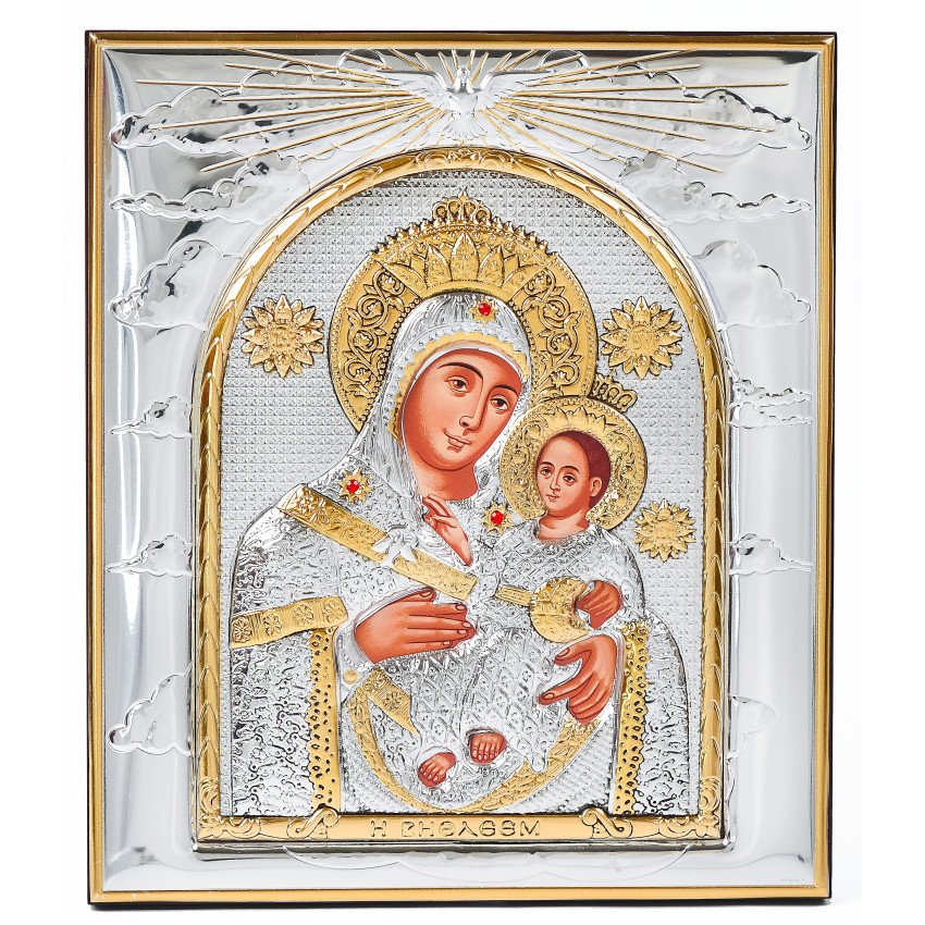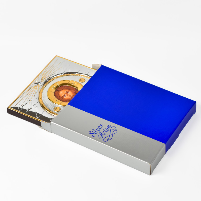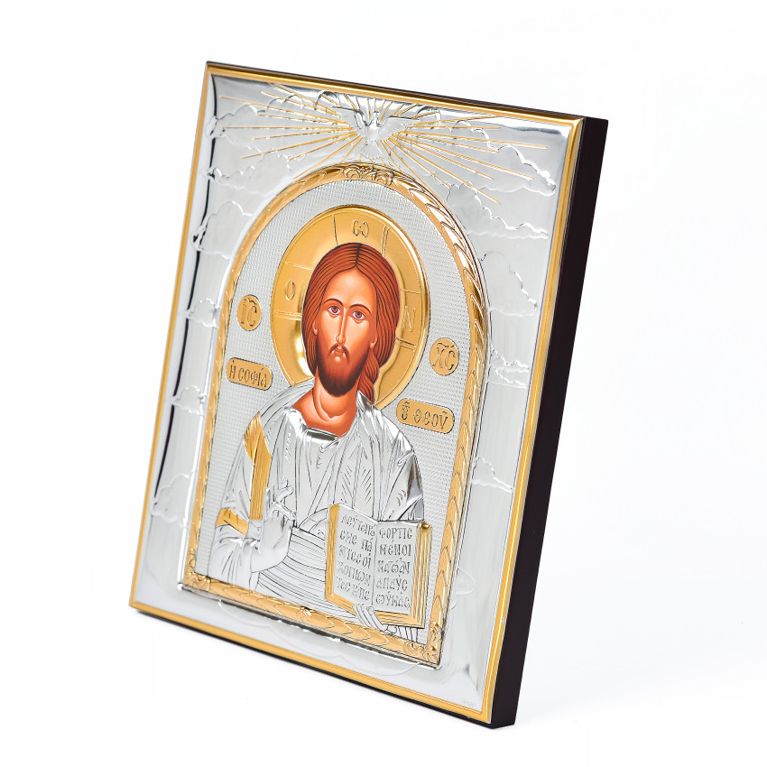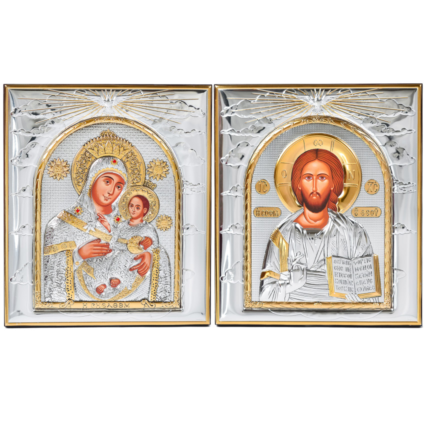 Вінчальна Пара Срібних Ікон Ісус Христос і Вифлеємська Богородиця 26,5х22,8см в рамці зі Святим Духом