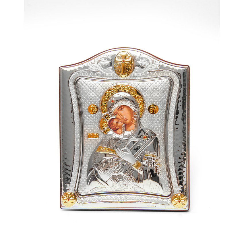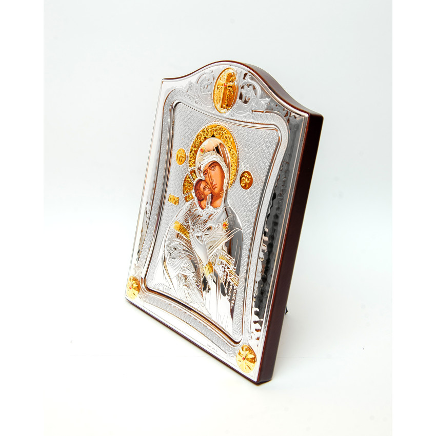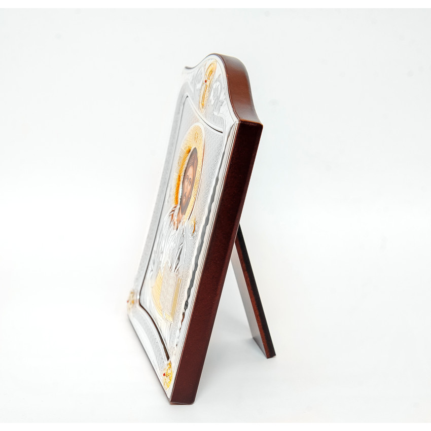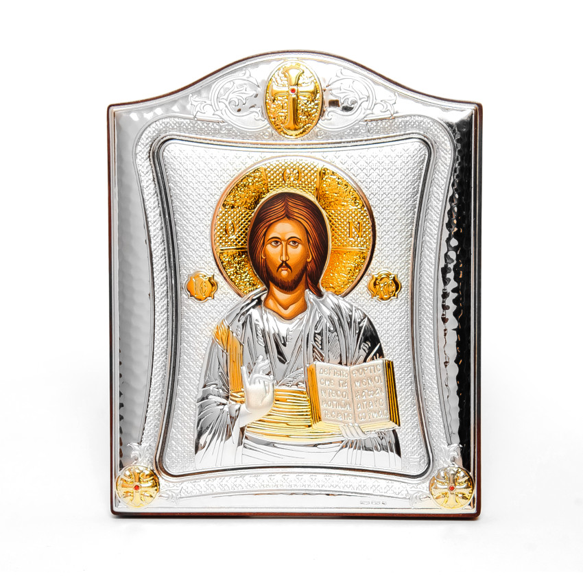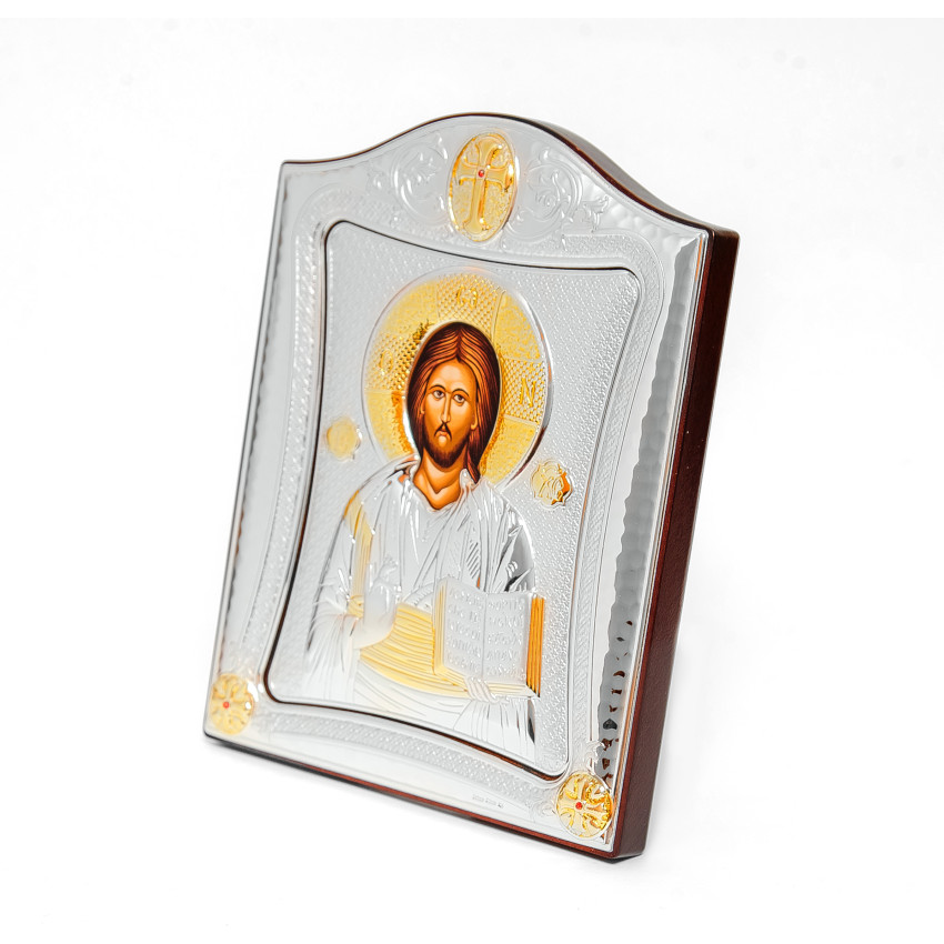 Матеріал срібного окладу зроблений із спеціального комбінованого листа металу який зверху ламінований шаром срібла 999 проби, також для захисту на поверхню наноситься родієве покриття яке захищає срібло від потемніння тя "старіння"