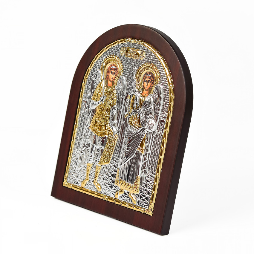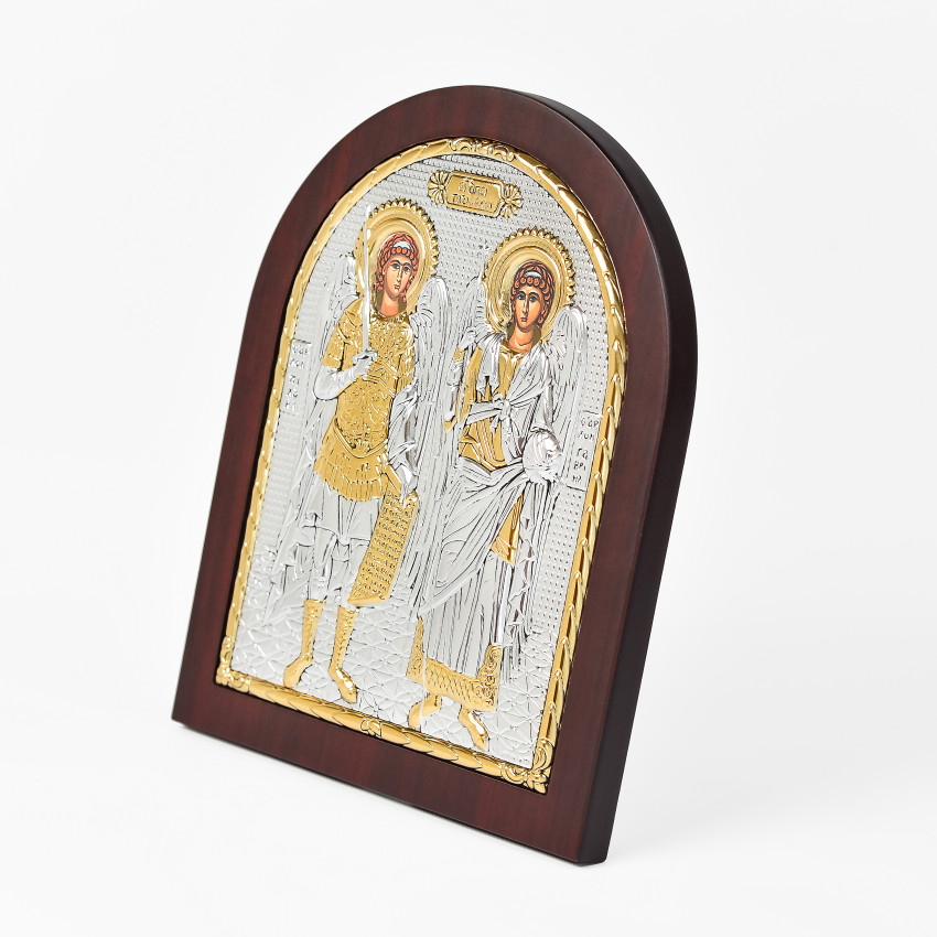 Срібна Ікона Св. Михаїл та Гавриїл 20х25см арочної форми на дереві з рамкою EP5-033XAG/P