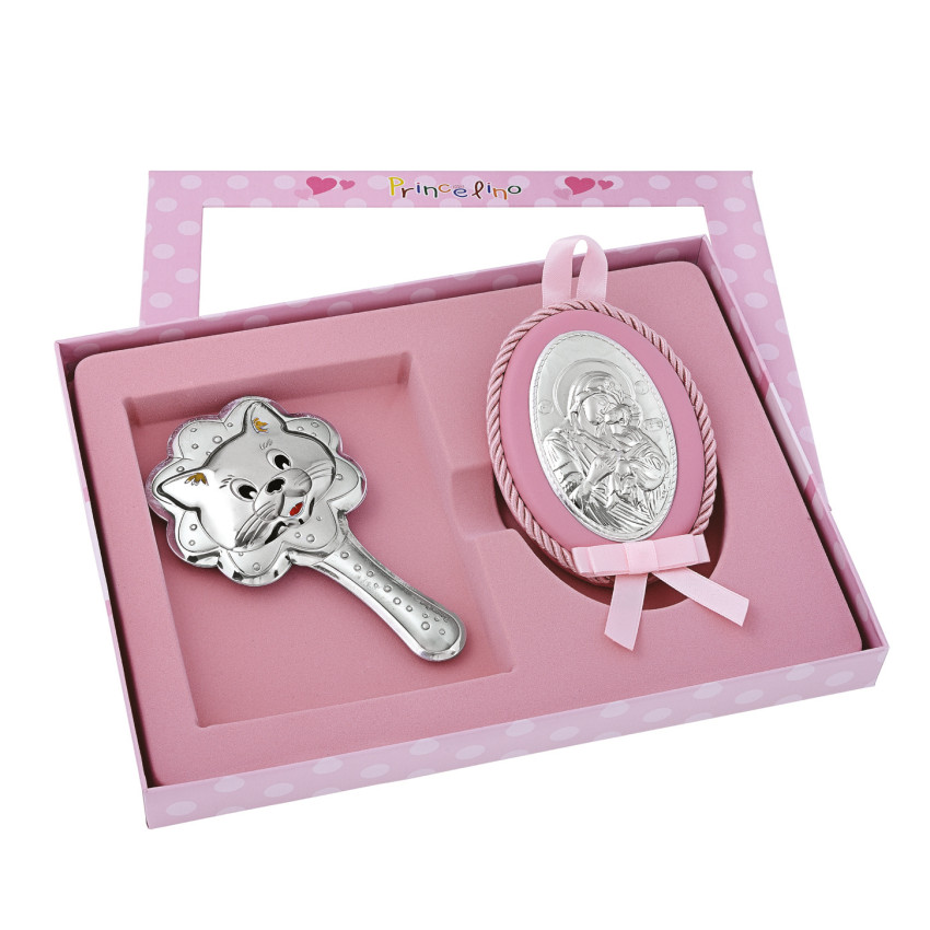 Дитячий набір для дівчинки 18х24см Іконка на подушечці та Брязкальце MB/S086-1R