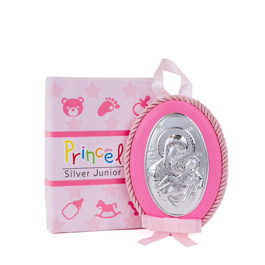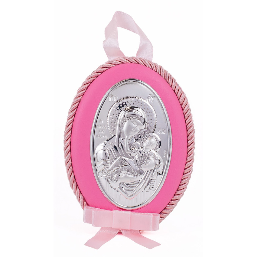 Дитяча Іконка на рожевій подушечці Божа Матір Розрада та Втіха 8х11см