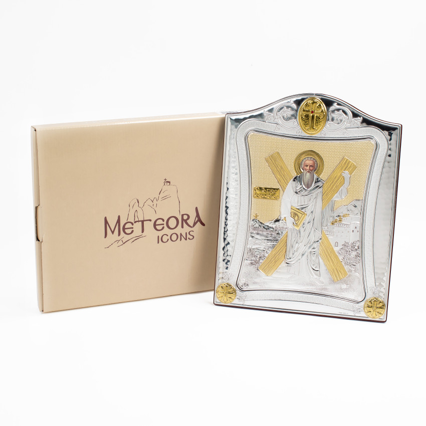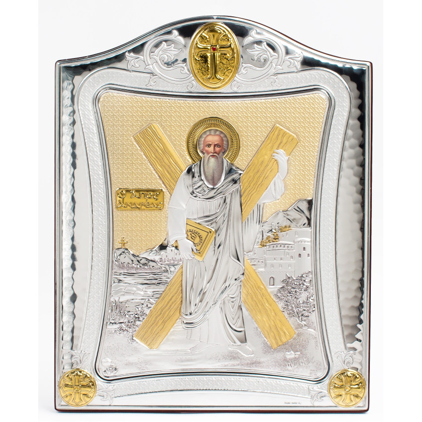 Ікона Андрія Первозванного 20x25см з позолотою в срібній рамці з позолотою