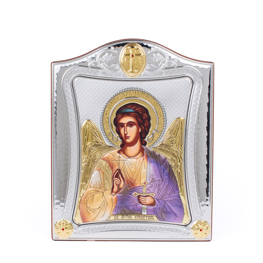 Ікона Ангела Охоронця 15,5x19,5см з різнобарвною емалью в срібній рамці з позолотою