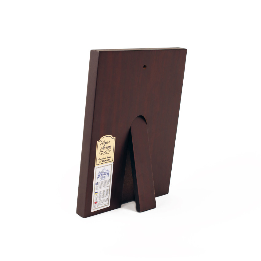 Підстави, на якому кріпитися оклад, зроблено з МДФ покритого шпоною горіха.