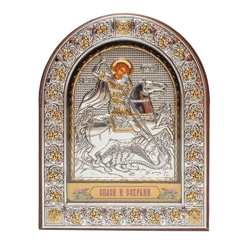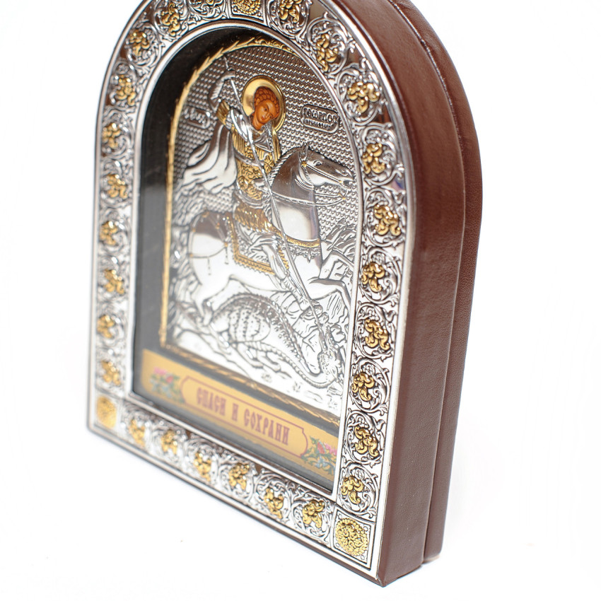Ікона Георгія Побідоносця 15.5x12см у срібному окладі під склом (з Греції)