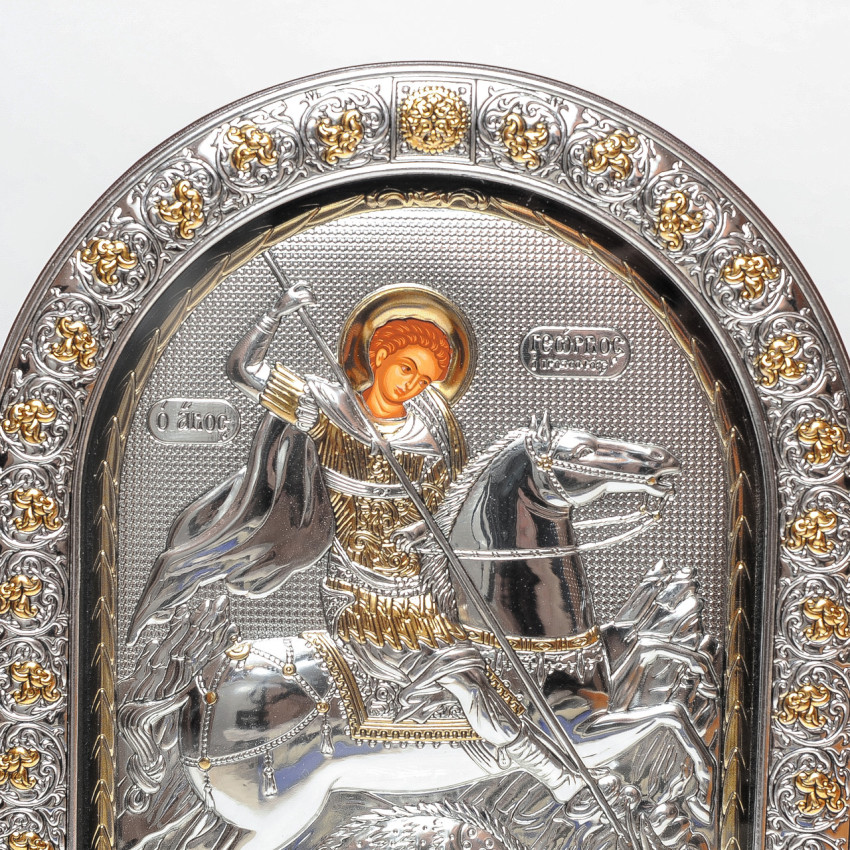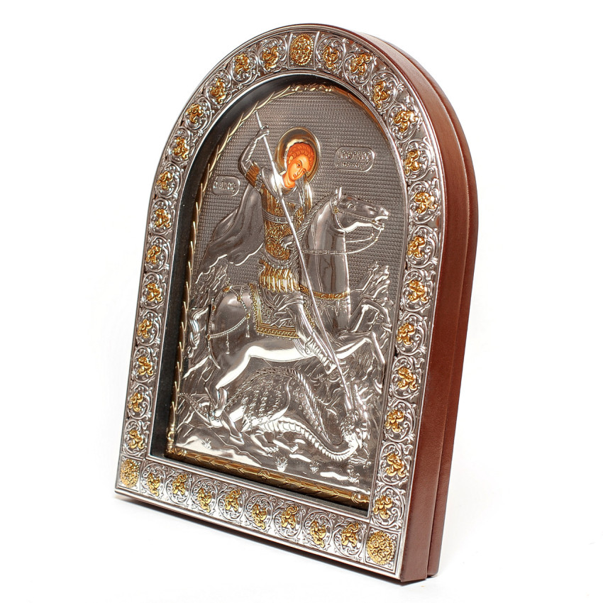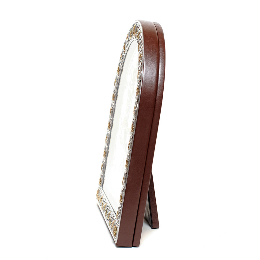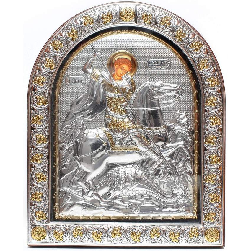 Образ має класичну аркову форму з дерев'яною рамкою.Основна частина ікони зображена на полотні - вона прописане методом шовкографії на лляному полотні натуральними фарбами «темпера» і обрамлена в срібну рамку, яка виготовлена із комбінованого листа металу miro-silvero – верхня частина якого ламінована сріблом 999°: в окремих місцях композиція вдало прикрашена сусальним золотом що придає їй більш контрастного вигляду. За допомогою сучасних методів обробки дорогоцінних металів та новаційного устаткування, виробнику вдалося досягнути найвищої якості деталізованого зображення на сріблі - всі елементи орнаменту композиції ікони чітко вирізьблені та яскраво проглядаються до найменших дрібниць. Зовнішній шар дорогоцінного металу ікони покритий спеціальним захисним лаком, що уберігає срібло від потемніння та старіння, захищаючи його від зовнішніх подразників таких як пил та сонячні промені – образ зберігатиме свій первозданний вигляд багато років.Закріплений оклад на дерев'яній основі коричневого кольору. (МДФ покритий шпоном горіха)Ікона має відкидну ніжку-підставку та отвір для зручного вертикального розміщення на стіні. Даний виріб чудо буде підійде до інтер'єру спальної кімнати, кухні, вітальні чи дитячої кімнати.Образ виготовлений в грецькому стилі іконографії з дотриманням всіх канонів давньовізантійського іконопису.Переваги: Багатошаровий матеріал окладу miro-silvero;Захищений від потемніння срібний оклад;Гармонійне поєднання срібла з золотом;Чіткий деталізований рельєфний узор;Європейське виробництво;Упакування:Виріб має оригінальне фірмове упакування від виробника - ікона надійно упакована в якісній картонній коробочці з логотипом компанії та м'який мішечок; дане упаковування гарантує, що виріб надійде Вам цілим та неушкодженим, а також в такому вигляді образу можна представити на подарунок близькій людині.Виробник: Silver Axion;Модельний ряд: Afon Silvero;Країна виробник: Греція;Купуючи в інтернет-магазині Silvericons срібний образ - Ви завжди будете впевненими у придбанні автентичного, якісного та оригінального виробу! Всі грецькі ікони мають Сертифікат Якості від виробника на тильній стороні, який засвідчує, що даний образ виготовлено на фабриці Silver Axion, а також вказує на модельну серію - Afon Silvero. Сертифікат надає Вам безстрокову Гарантію на дану ікону...