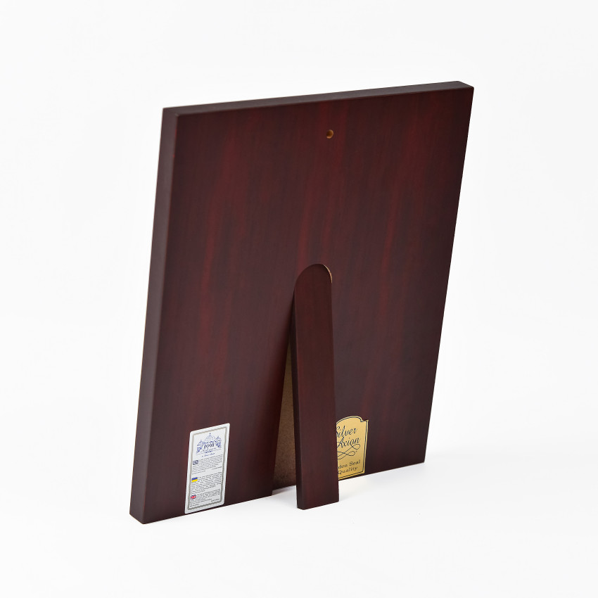 Закріплений оклад на дерев'яній основі коричневого кольору. (МДФ покритий шпоном горіха)