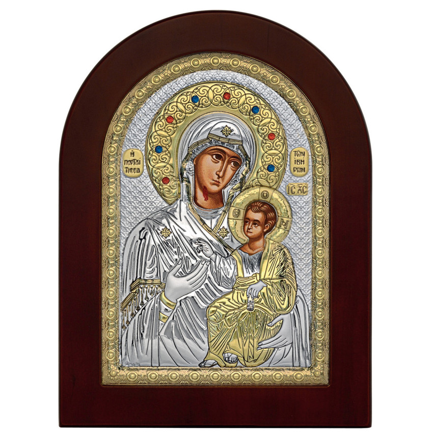 Ікона Іверська Божа Матір у сріблі та позолоті 15х19 см (Греція)