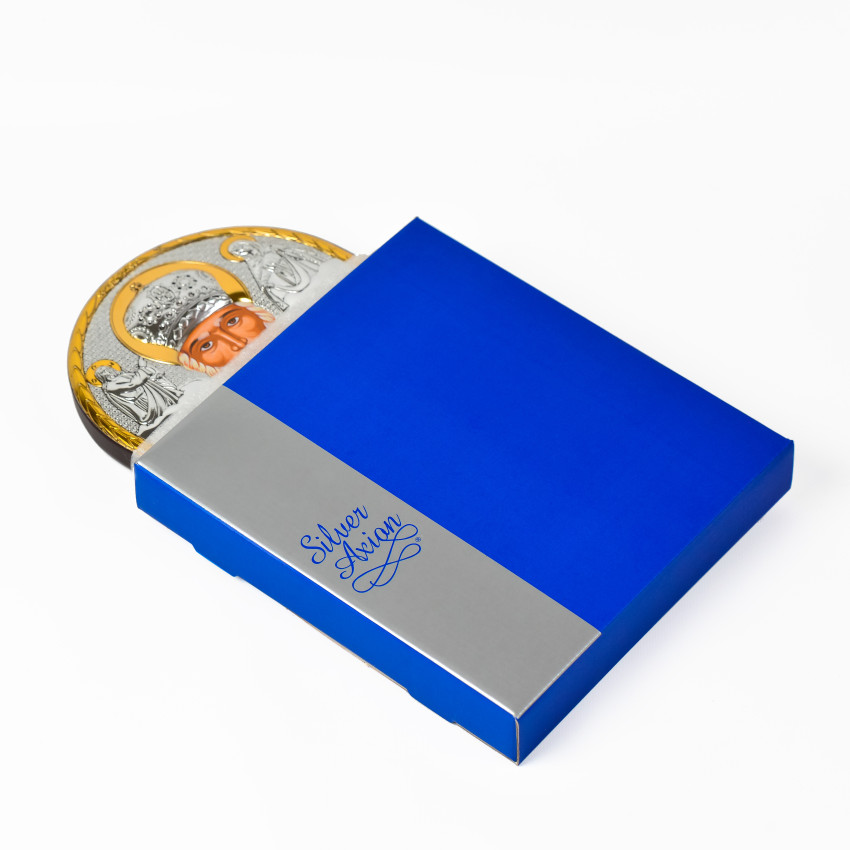 Виріб має оригінальне фірмове упакування від виробника - ікона надійно упакована в якісній картонній коробочці з логотипом компанії та м'який мішечок; дане упаковування гарантує, що виріб надійде Вам цілим та неушкодженим, а також в такому вигляді образу можна представити на подарунок близькій людині.