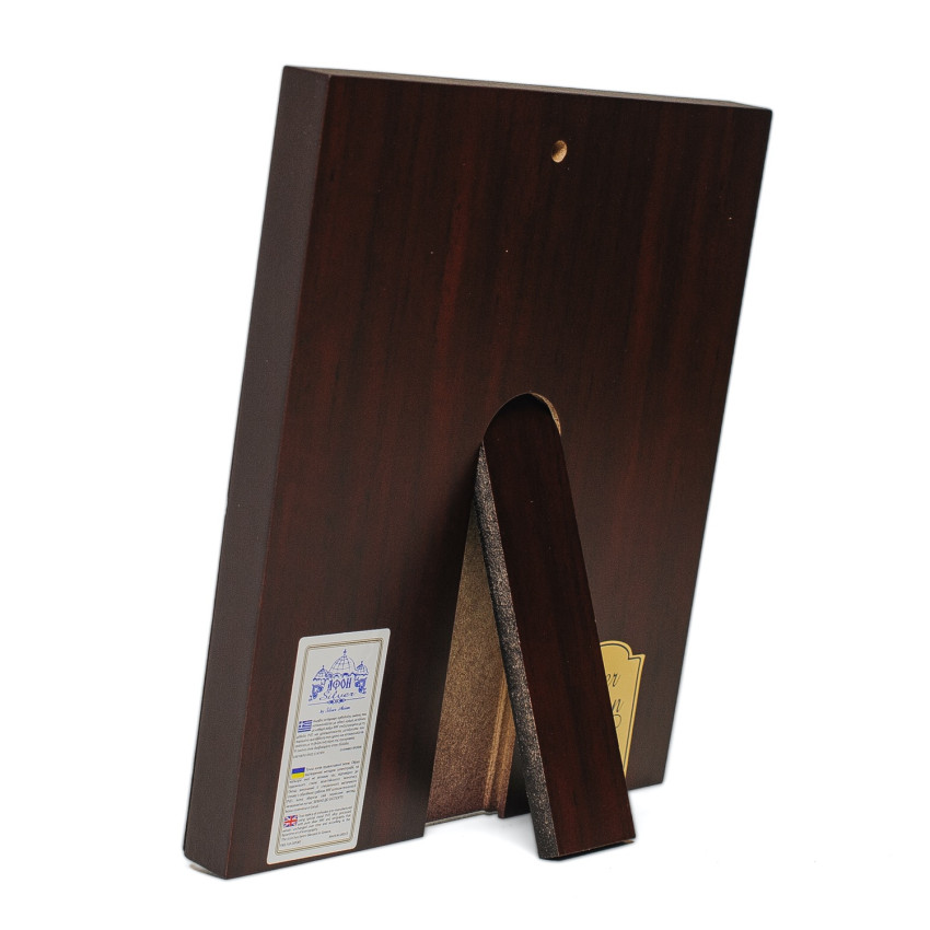 Ікона має відкидну ніжку-підставку та отвір для зручного вертикального розміщення на стіні. Даний виріб чудо буде підійде до інтер'єру спальної кімнати, кухні, вітальні чи дитячої кімнати.