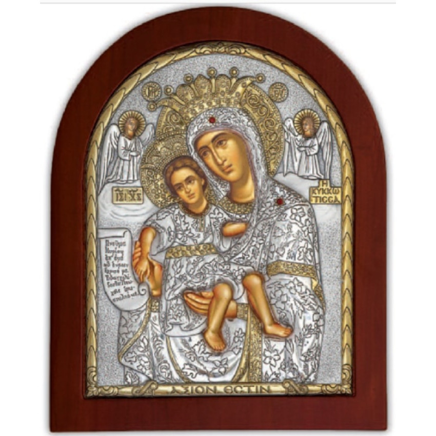 Ікона Милуюча Божа Матір Достойна є 15х19,6см в срібному окладі з позолотою EK4-022XAG