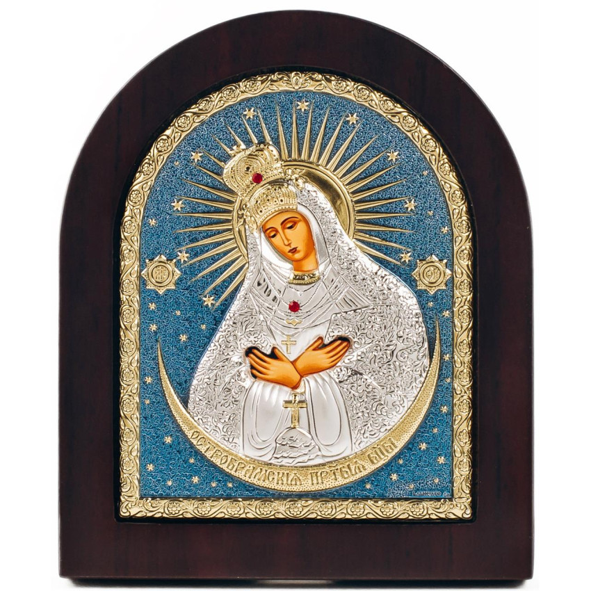 Ікона Остробрамська Божа Матір 13х11см у срібному окладі 925 з емаллю