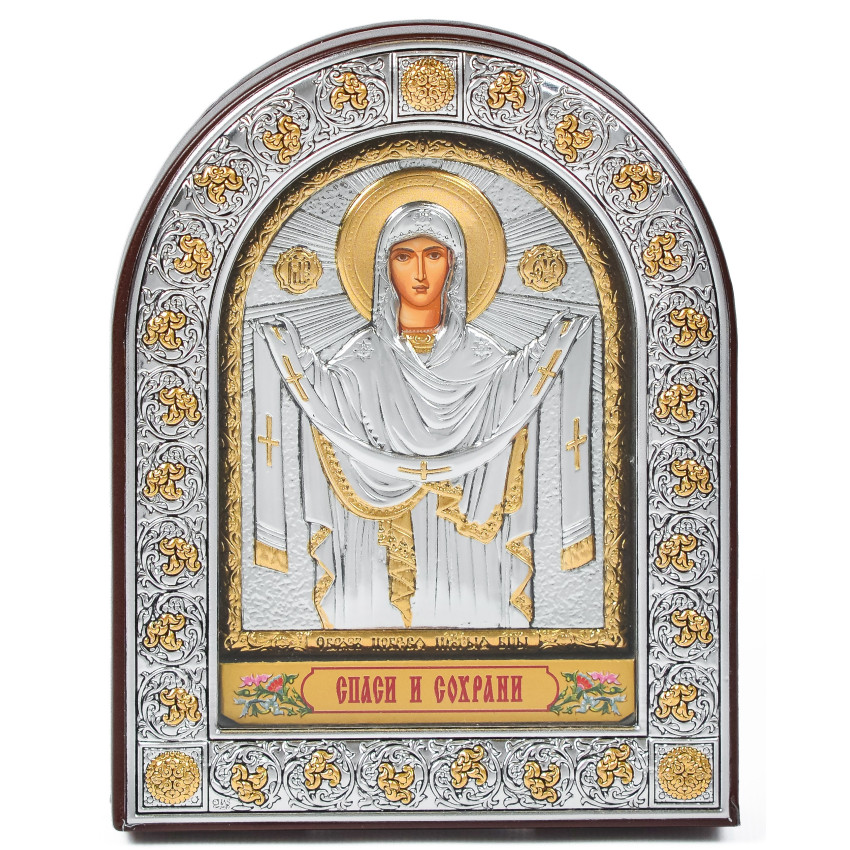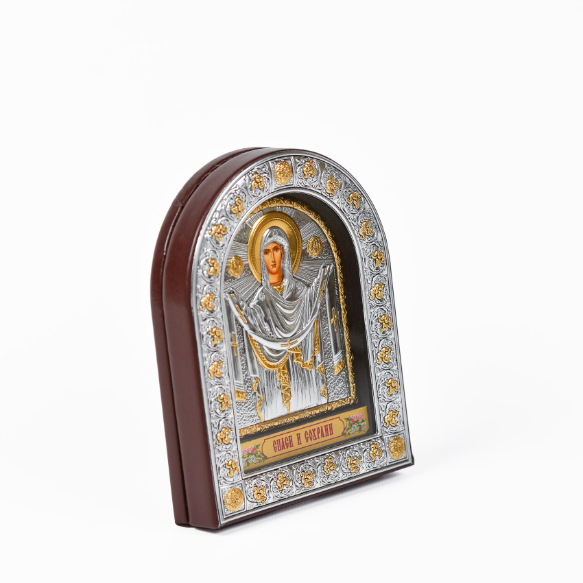 Ікона Покрови Богородиці 12х15,5см під склом аркової форми в шкірі EPZ3-192AG-BR/P