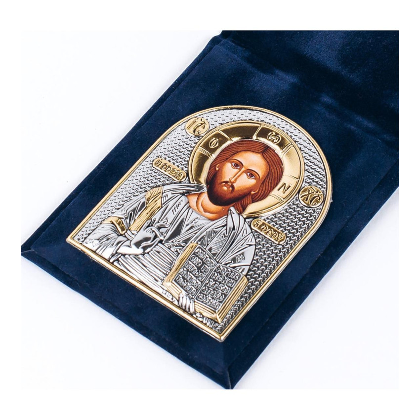 Ікона-складень Ісус 5,5x7см, срібна в оксамитовій книжечці