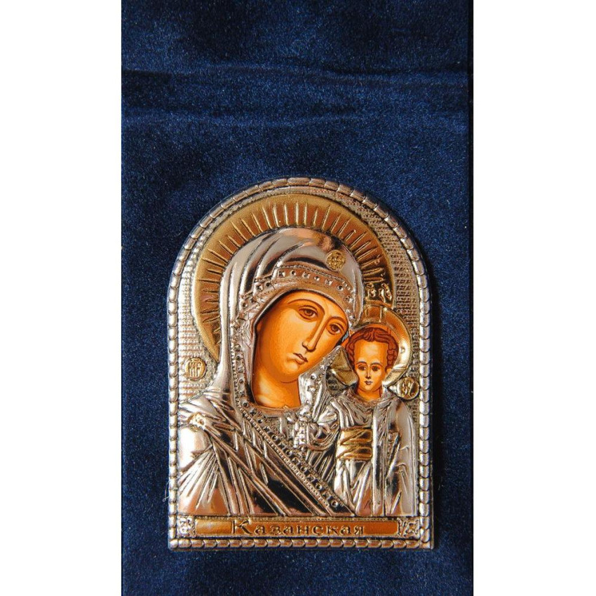 Ікона-складень Казанська Богородиця срібна 3,8х5,3см, срібна в оксамитовій книжечці