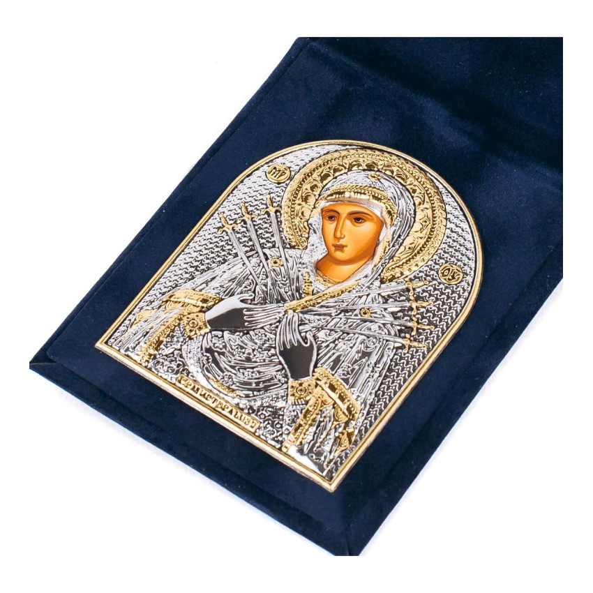 Ікона-складень Семистрільна 3,8х5,3см, срібна в оксамитовій книжечці