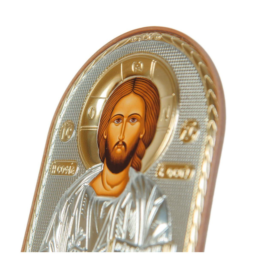 Серебряная икона "Спаситель Иисус" на пластиковой основе