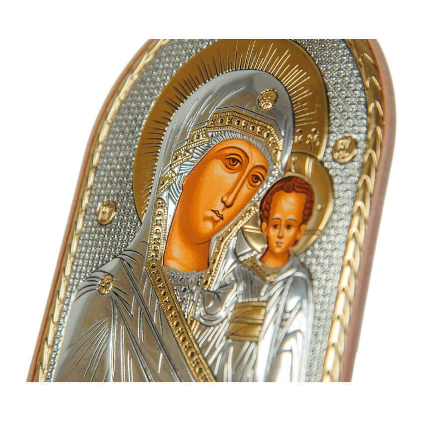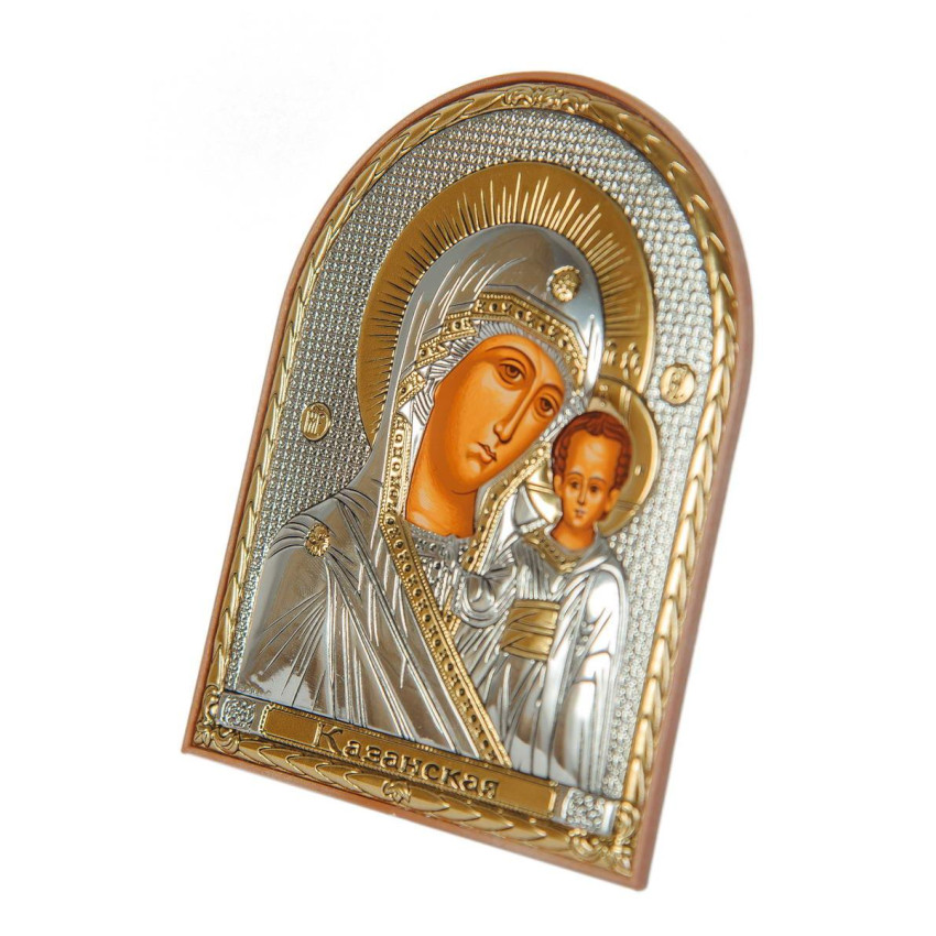 Серебряная икона "Казанская Божья Матерь" на пластиковой основе