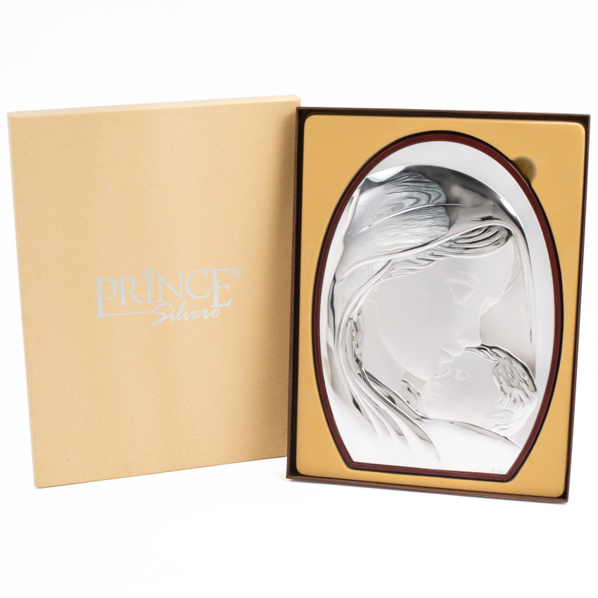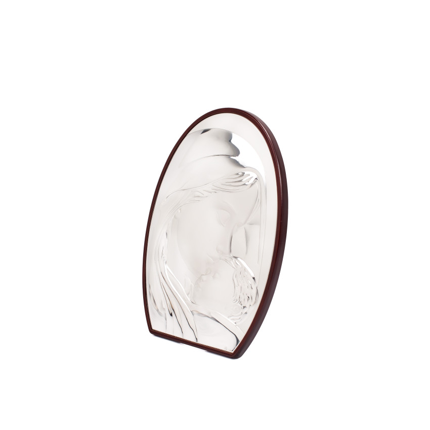 Ікона срібна "Марія з немовлям" у католицькому стилі 28х20cм