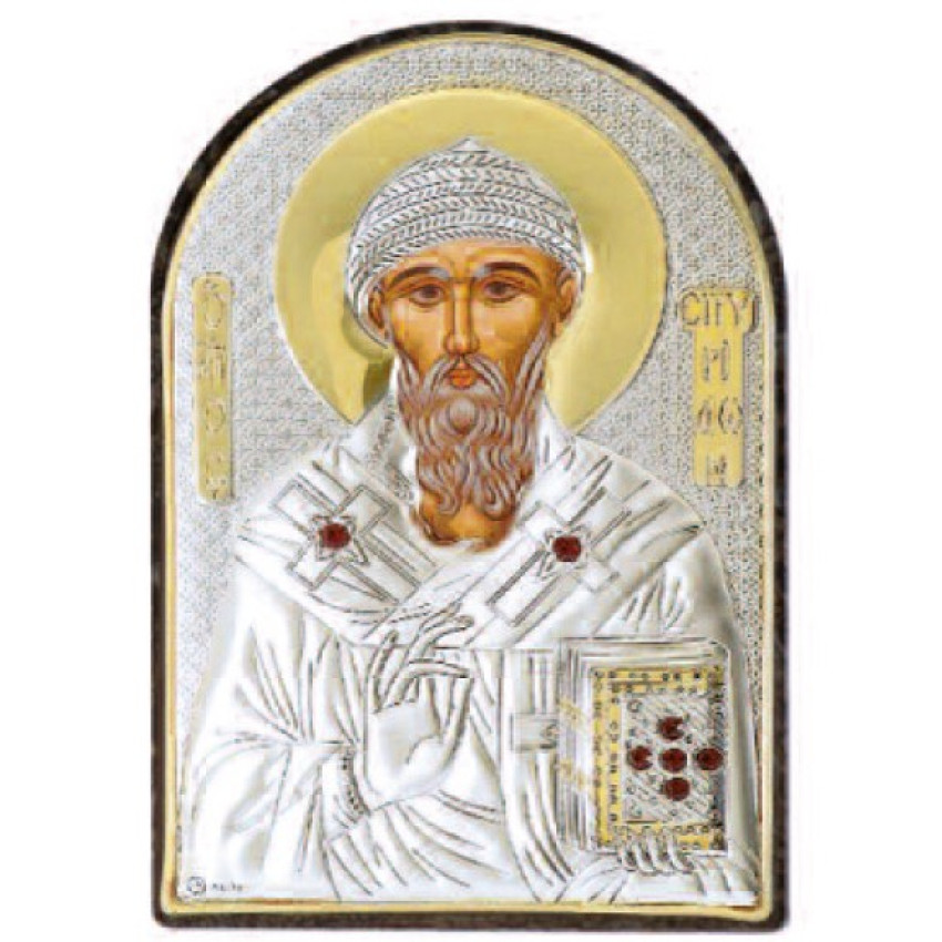 Ікона Св. Спірідон 4,2х5,8см срібна на пластику арковоЇ форми