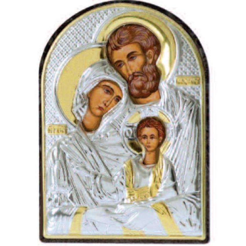 Образ має класичну аркову форму.Оклад виробу виготовлений із комбінованого листа металу miro-silvero – верхня частина якого ламінована сріблом 999°: в окремих місцях композиція вдало прикрашена сусальним золотом, що придає їй більш контрастного вигляду. За допомогою сучасних методів обробки дорогоцінних металів та новаційного устаткування, виробнику вдалося досягнути найвищої якості деталізованого зображення на сріблі - всі елементи орнаменту композиції ікони чітко вирізьблені та яскраво проглядаються до найменших дрібниць. Обличчя Святих – відкрите та прописане методом шовкографії на лляному полотні натуральними фарбами «темпера». Зовнішній шар дорогоцінного металу ікони покритий спеціальним захисним лаком, що уберігає срібло від потемніння та старіння, захищаючи його від зовнішніх подразників таких як пил та сонячні промені – образ зберігатиме свій первозданний вигляд багато років.Закріплений оклад на дерев'яній основі коричневого кольору. (МДФ покритий шпоном горіха)Ікона має відкидну ніжку-підставку та отвір для зручного вертикального розміщення на стіні. Даний виріб чудо буде підійде до інтер'єру спальної кімнати, кухні, вітальні чи дитячої кімнати.Образ виготовлений в грецькому стилі іконографії з дотриманням всіх канонів давньовізантійського іконопису.Переваги: Багатошаровий матеріал окладу miro-silvero;Захищений від потемніння срібний оклад;Гармонійне поєднання срібла з золотом;Чіткий деталізований рельєфний узор;Європейське виробництво;Упакування:Виріб має оригінальне фірмове упакування від виробника - ікона надійно упакована в якісній картонній коробочці з логотипом компанії та м'який мішечок; дане упаковування гарантує, що виріб надійде Вам цілим та неушкодженим, а також в такому вигляді образу можна представити на подарунок близькій людині.Виробник: Silver Axion;Модельний ряд: Afon Silvero;Країна виробник: Греція;Купуючи в інтернет-магазині Silvericons срібний образ - Ви завжди будете впевненими у придбанні автентичного, якісного та оригінального виробу! Всі грецькі ікони мають Сертифікат Якості від виробника на тильній стороні, який засвідчує, що даний образ виготовлено на фабриці Silver Axion, а також вказує на модельну серію - Afon Silvero. Сертифікат надає Вам безстрокову Гарантію на дану ікону...