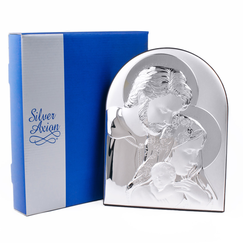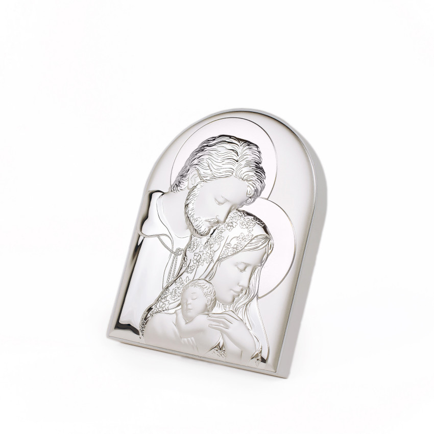 Ікона Святе Сімейство 11,9х15,2см срібна аркової форми на білому дереві без рамки EP4-188XG-WH/S