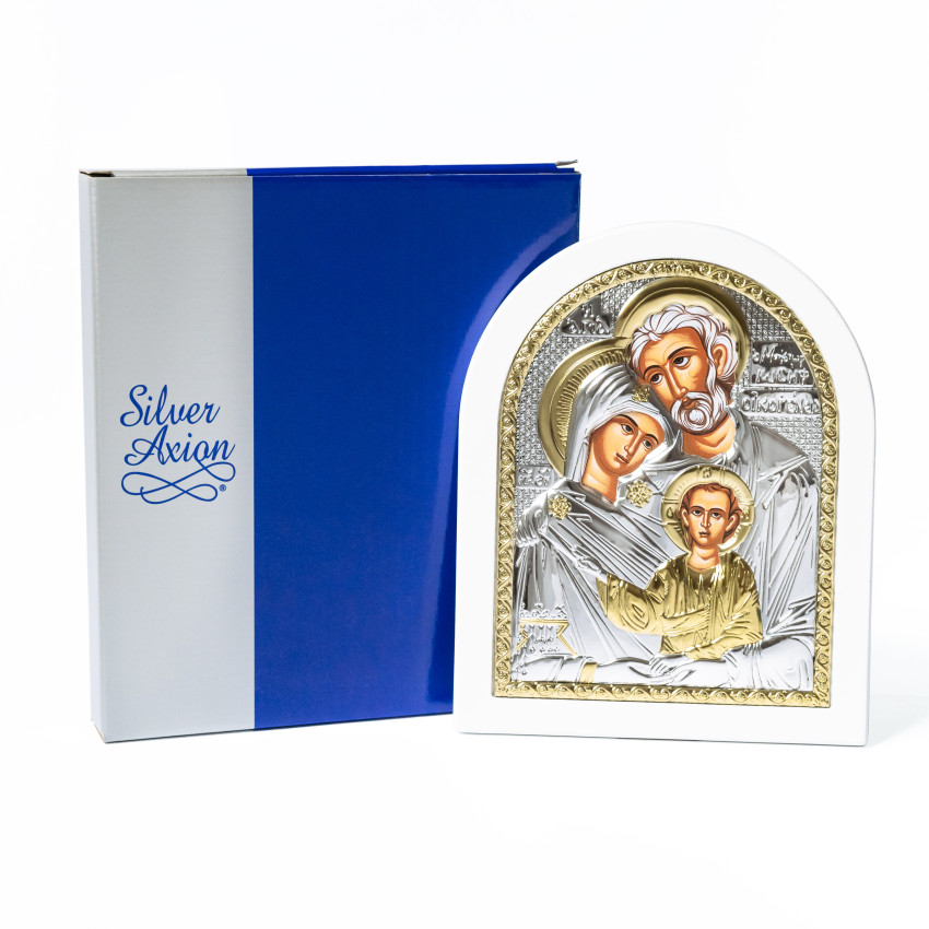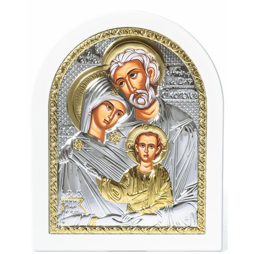Ікона Святе Сімейство 14,7х18см аркової форми на білому дереві EP4-015XAG-WH/P