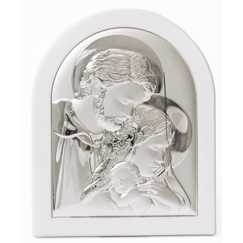 Ікона Святе Сімейство 14,7х18см срібна аркової форми на білому дереві EP4-188XBG-WH/S