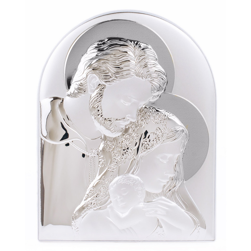 Ікона Святе Сімейство 16,3х21,3см срібна аркової форми на білому дереві без рамки EP5-188XG-WH/S