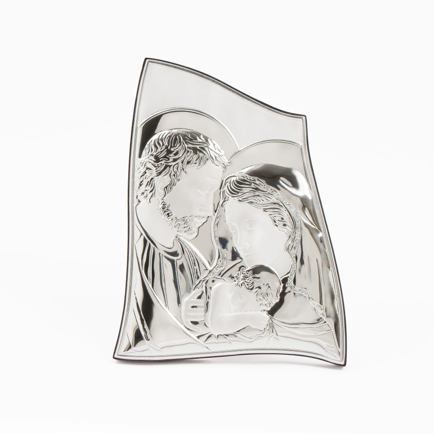 Ікона Святе Сімейство 16х21см срібна на деревякому кіоті хвилясної форми EP-447XG/S