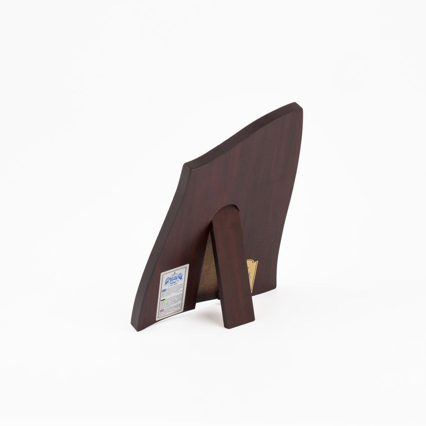 Закріплений оклад на дерев'яній основі коричневого кольору. (МДФ покритий шпоном горіха)