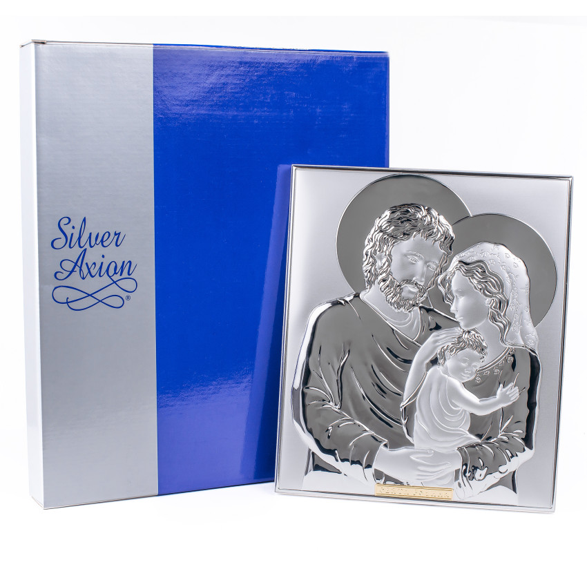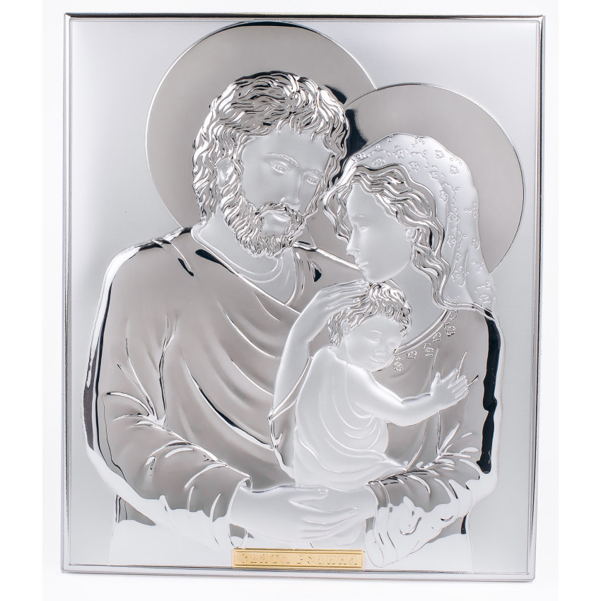 Ікона Святе Сімейство 20,9х24,7см срібна на білому дереві прямокутної форми без рамки EP715-412XM-WH/S