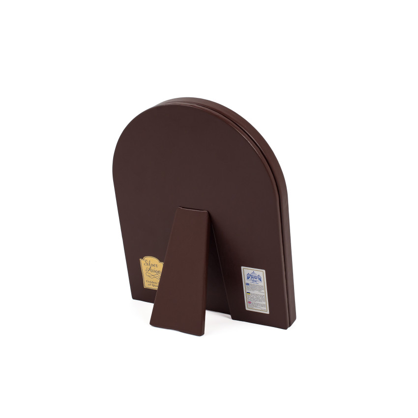 Срібна Ікона Свята Сім'я 26х21см в італійському стилі іконографії арочної форми під склом в коричневій шкірі EPZ5-188BG-BR/S