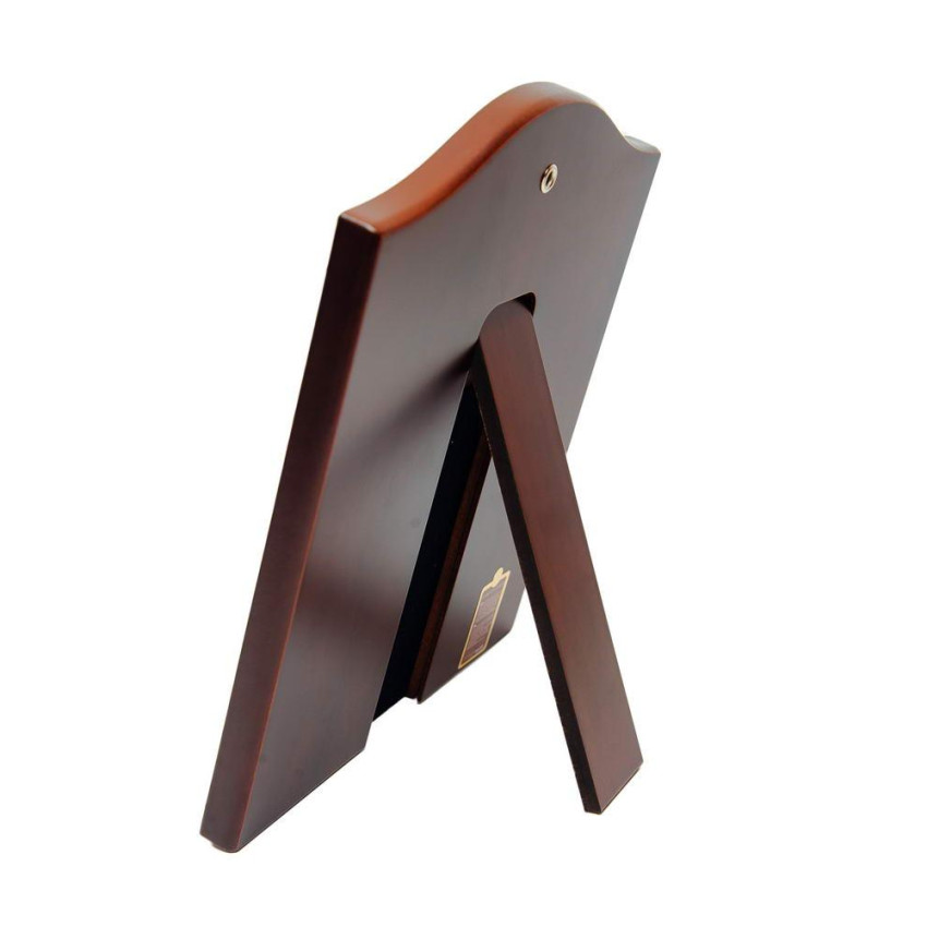 Закріплений оклад на дерев'яному кіоті (основі) прямокутної форми, яка виготовлена із МДФ покритого шпоном дерева. Ззаду ікони є відкидна ніжна та отвір для кріплення на стіні.