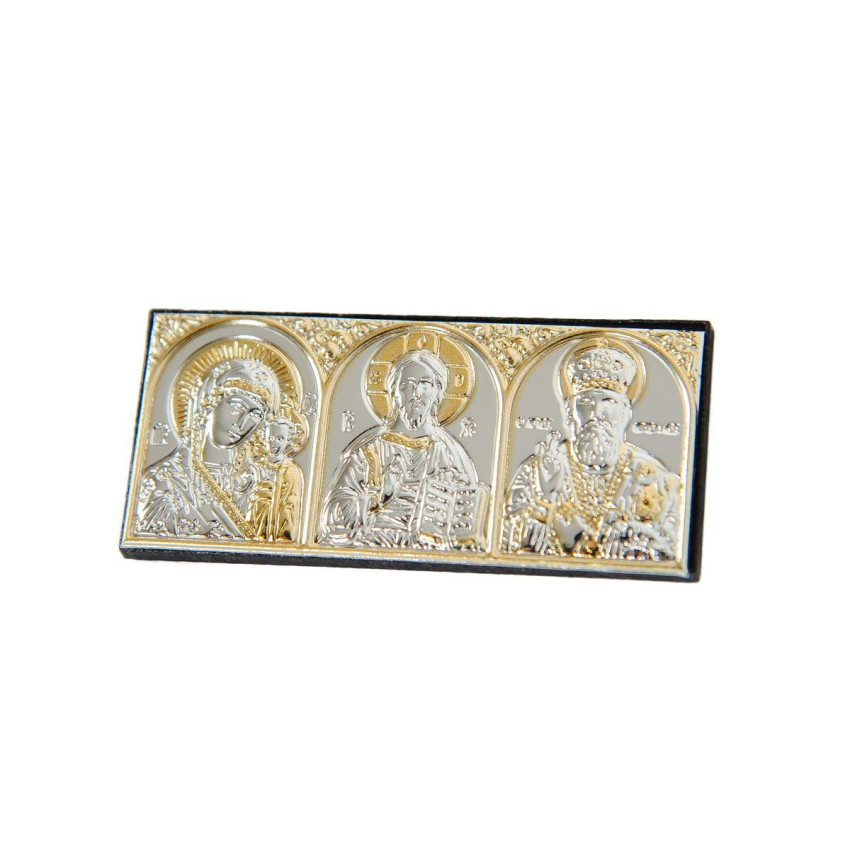 Автомобільна ікона, триптих, іконостас в машину Silver Axion (34х77 мм)