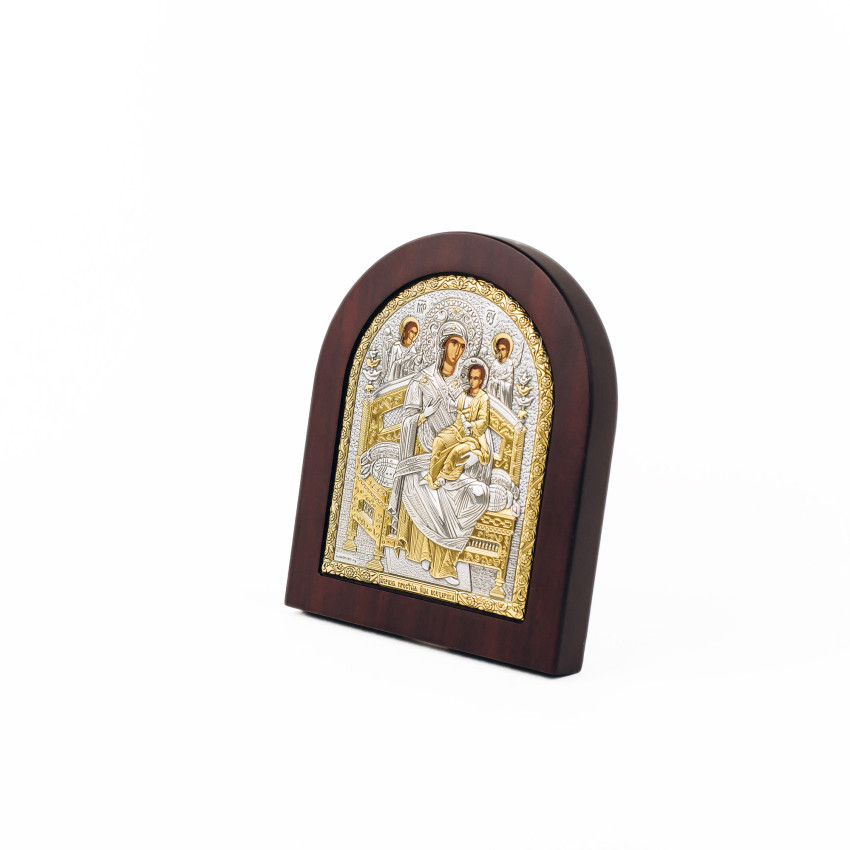 Образ має класичну аркову форму.Оклад виробу виготовлений із комбінованого листа металу miro-silvero – верхня частина якого ламінована сріблом 999°: в окремих місцях композиція вдало прикрашена сусальним золотом, що придає їй більш контрастного вигляду. За допомогою сучасних методів обробки дорогоцінних металів та новаційного устаткування, виробнику вдалося досягнути найвищої якості деталізованого зображення на сріблі - всі елементи орнаменту композиції ікони чітко вирізьблені та яскраво проглядаються до найменших дрібниць. Обличчя Святих – відкрите та прописане методом шовкографії на лляному полотні натуральними фарбами «темпера». Зовнішній шар дорогоцінного металу ікони покритий спеціальним захисним лаком, що уберігає срібло від потемніння та старіння, захищаючи його від зовнішніх подразників таких як пил та сонячні промені – образ зберігатиме свій первозданний вигляд багато років.Закріплений оклад на дерев'яній основі коричневого кольору. (МДФ покритий шпоном горіха)Ікона має відкидну ніжку-підставку та отвір для зручного вертикального розміщення на стіні. Даний виріб чудо буде підійде до інтер'єру спальної кімнати, кухні, вітальні чи дитячої кімнати.Образ виготовлений в грецькому стилі іконографії з дотриманням всіх канонів давньовізантійського іконопису.Переваги: Багатошаровий матеріал окладу miro-silvero;Захищений від потемніння срібний оклад;Гармонійне поєднання срібла з золотом;Чіткий деталізований рельєфний узор;Європейське виробництво;Упакування:Виріб має оригінальне фірмове упакування від виробника - ікона надійно упакована в якісній картонній коробочці з логотипом компанії та м'який мішечок; дане упаковування гарантує, що виріб надійде Вам цілим та неушкодженим, а також в такому вигляді образу можна представити на подарунок близькій людині.Виробник: Silver Axion;Модельний ряд: Afon Silvero;Країна виробник: Греція;Купуючи в інтернет-магазині Silvericons срібний образ - Ви завжди будете впевненими у придбанні автентичного, якісного та оригінального виробу! Всі грецькі ікони мають Сертифікат Якості від виробника на тильній стороні, який засвідчує, що даний образ виготовлено на фабриці Silver Axion, а також вказує на модельну серію - Afon Silvero. Сертифікат надає Вам безстрокову Гарантію на дану ікону...