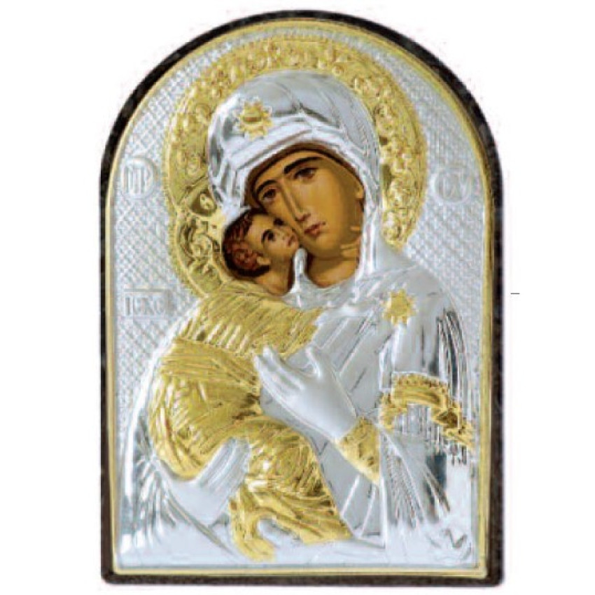 Ікона Вишгородська Божа Маріт 4,2х5,8см срібна на пластику арковоЇ форми