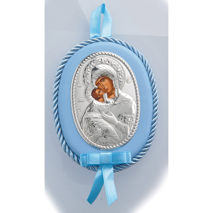 Іконка Володимирська Богородиця 10х12,5см на подушечці (у синьому кольорі)