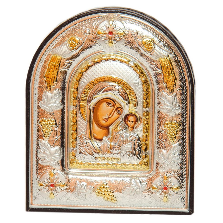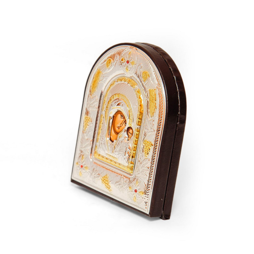 Казанська Ікона Божої Матері 12х14см аркової форми на коричневій шкірі