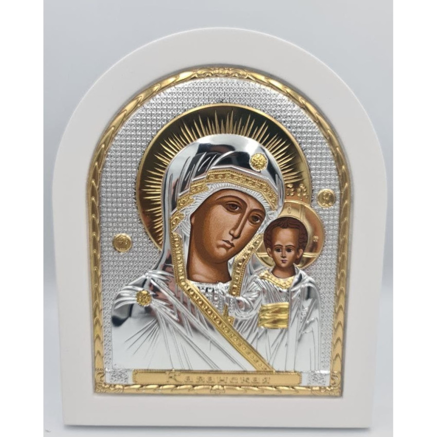 Казанська Ікона Божої Матері 14,7х18см аркової форми на білому дереві EP4-004XAG-WH/P