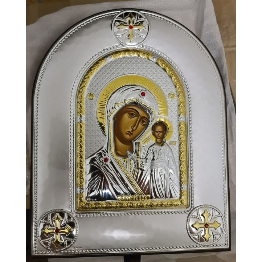Ікона зроблена на одній із найкращих іконописних фабрик Греції – Silver Axion, за всіма канонами церковного іконопису у стровізантійському стилі іконографії. Характерною особливістю майстерності виробника є чітка деталізація всіх елементів образу, які професійно вирізані на сріблі; всі деталі орнаменту на сріблі – німб, одяг, фон, прикраси – до найменших дрібниць виразно видно на окладі. Завдяки сучасним технологіям обробки дорогоцінних матеріалів – на тонкому та делікатному аркуші відтворюється оригінальний образ багатовікової Ікони у всій своїй первозданній красі.