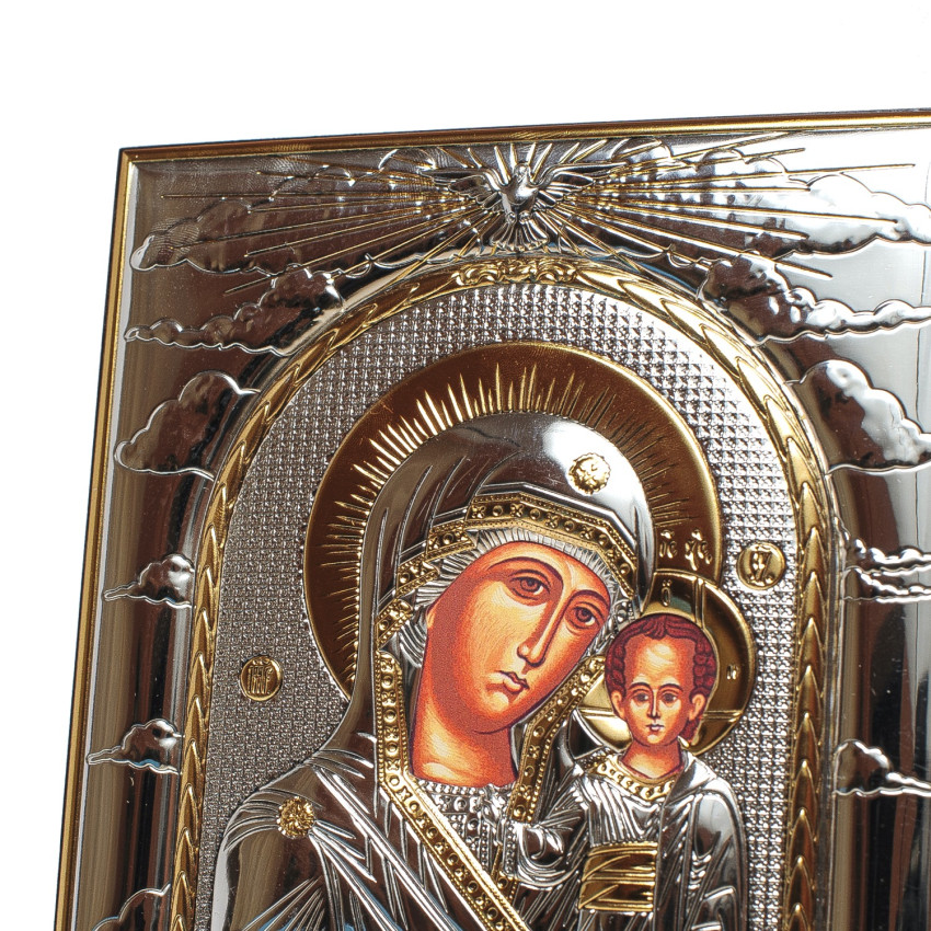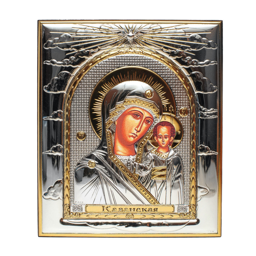Оклад виробу виготовлений із комбінованого листа металу miro-silvero – верхня частина якого ламінована сріблом 999°: в окремих місцях композиція вдало прикрашена сусальним золотом, що придає їй більш контрастного вигляду. За допомогою сучасних методів обробки дорогоцінних металів та новаційного устаткування, виробнику вдалося досягнути найвищої якості деталізованого зображення на сріблі - всі елементи орнаменту композиції ікони чітко вирізьблені та яскраво проглядаються до найменших дрібниць. Обличчя Святих – відкрите та прописане методом шовкографії на лляному полотні натуральними фарбами «темпера». Зовнішній шар дорогоцінного металу ікони покритий спеціальним захисним лаком, що уберігає срібло від потемніння та старіння, захищаючи його від зовнішніх подразників таких як пил та сонячні промені – образ зберігатиме свій первозданний вигляд багато років.