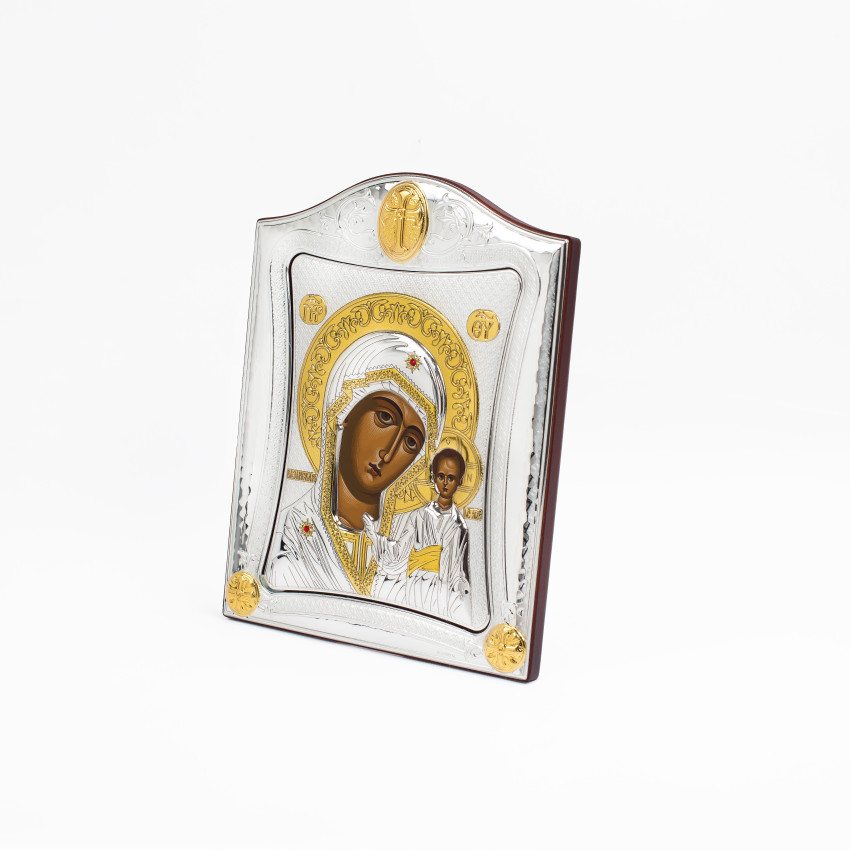 Казанська Ікона Божої Матері 9,5x12,5см в срібній рамці з позолотою