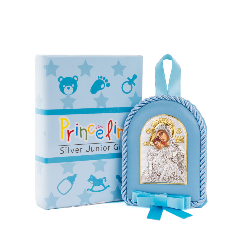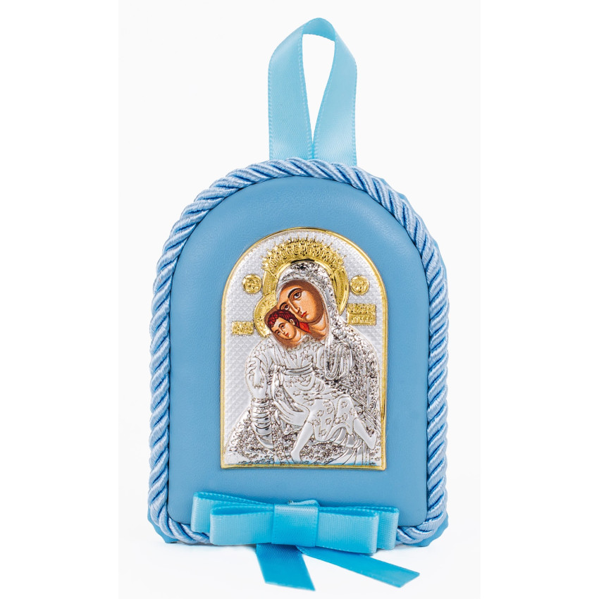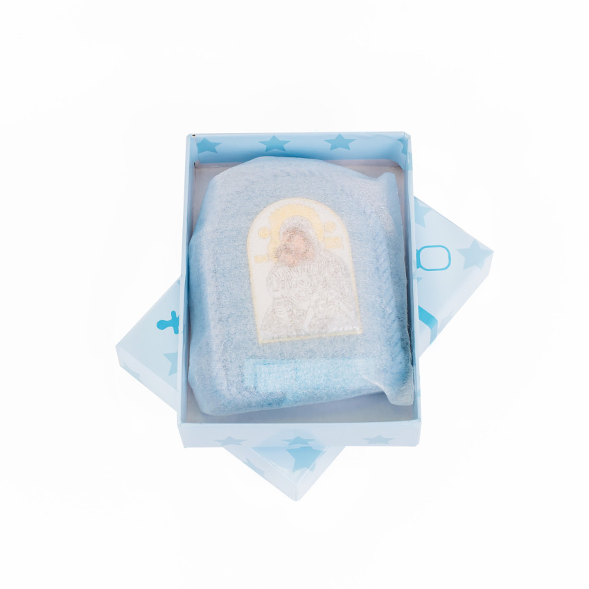 Кікська Милостива Божа Матір 8x10смдитяча іконка на синій подушечці для хлопчика MA/D1121E-C