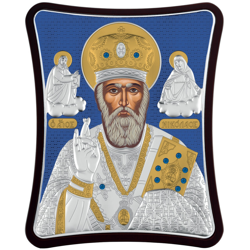 Миколай Чудотворець 15x20см на дерев'яному витягнутому кіоті в синій емалі