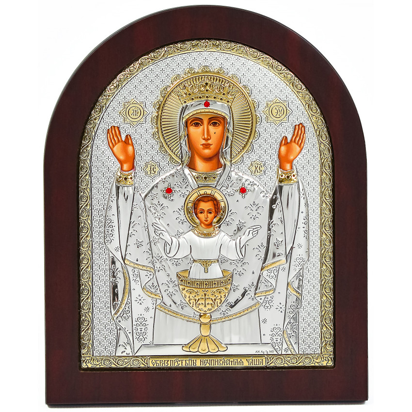 Невипивна Чаша ікона Божої Матері 11х13см в срібному окладі з позолотою EP3-041XAG